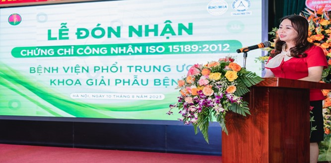 Ngày 10/8/2023 vừa qua, khoa Giải phẫu bệnh thuộc Bệnh viện Phổi Trung ương đã được Văn phòng Công nhận chất lượng cấp chứng chỉ công nhận ISO 15189:2012. Lễ trao chứng chỉ được diễn ra với sự có mặt lãnh đạo bộ Y tế và Giám đốc Văn phòng công nhận chất lượng.